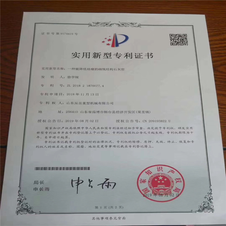 我公司技術人員通過多年的探索,在上百臺新型節(jié)能環(huán)保石灰窯的建設中,總結研發(fā)出(立式)石灰窯出避免結瘤的新型技術專利。